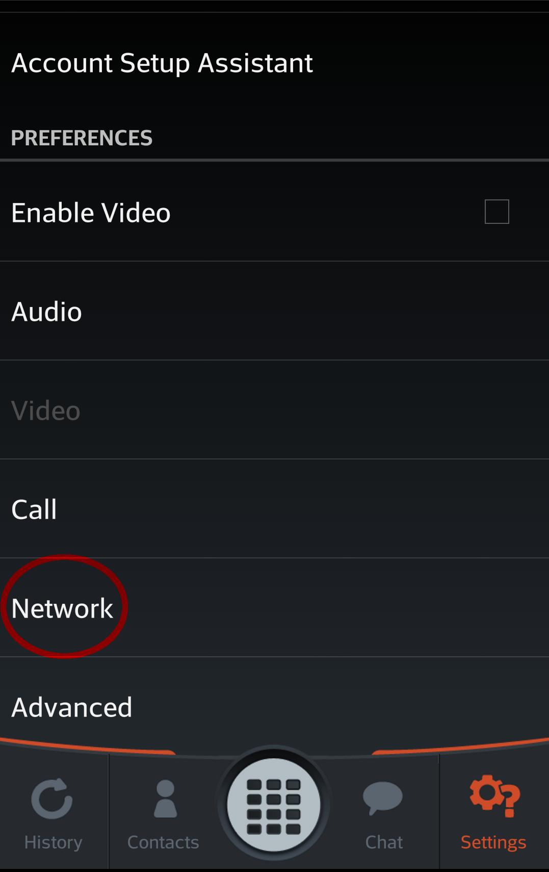 1. Na categoria Preferences, acesse o menu Network, onde você poderá adicionar um servidor STUN (Session Traversal Utilities for NAT. O servidor STUN ajuda a identificar o IP público do seu gateway automaticamente e a estabelecer a sessão SIP. O INOC-DBA não oferece um servidor STUN, mas há diversos servidores públicos que podem ser utilizados. Por exemplo: stun.l.google.com, stun1.l.google.com, stun2.l.google.com, stun3.l.google.com, stun4.l.google.com, stun01.sipphone.com, stun.ekiga.net e stun.zoiper.com.