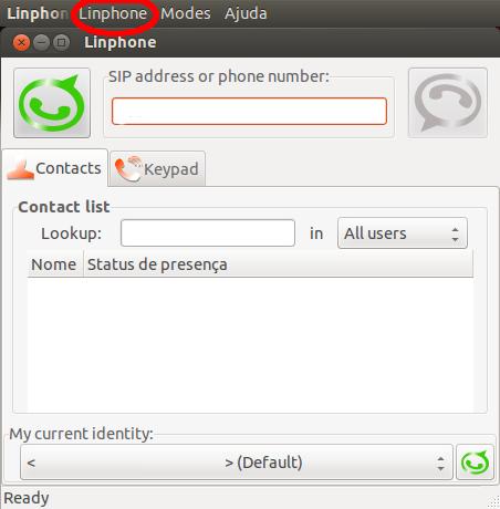 1. Abra o aplicativo Linphone e a seguinte tela inicial será apresentada: