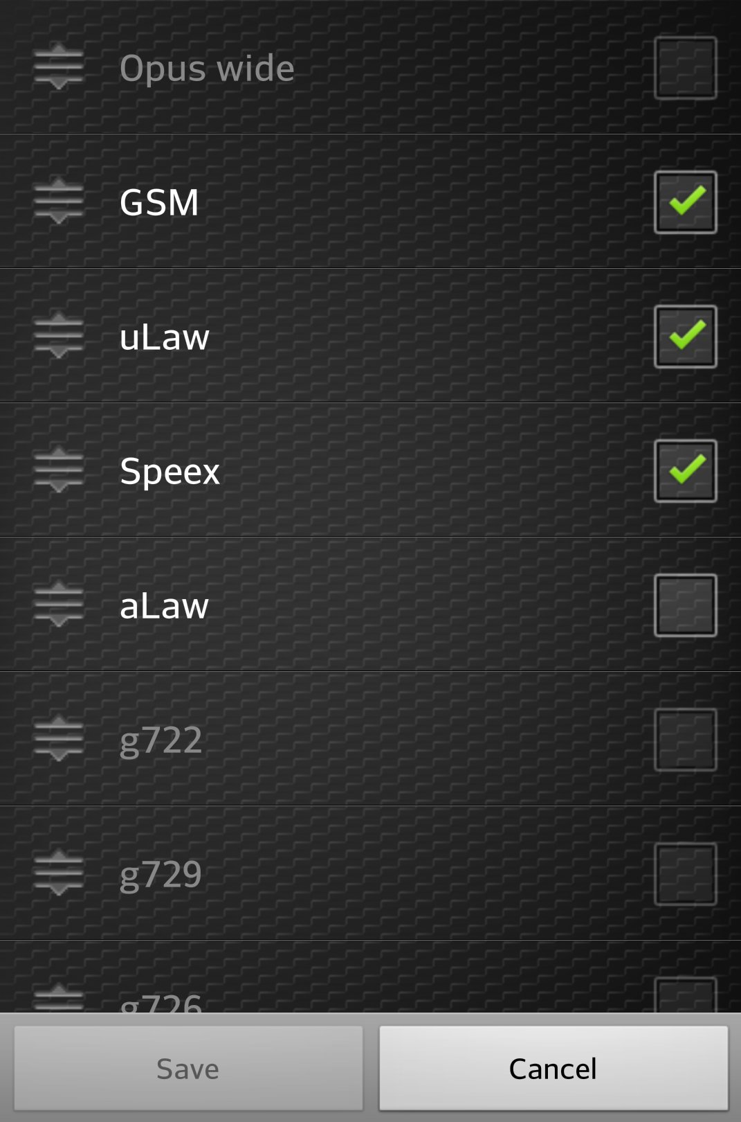 GSM - Codec também destinado a uso em rede móvel, usando mais banda que o Speex, porém tendo uma qualidade de aúdio melhor.